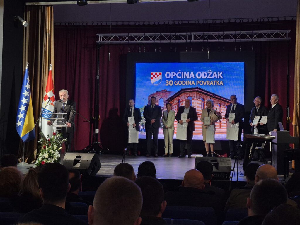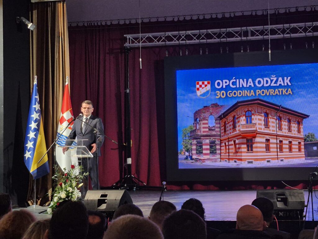 Nakon odavanja počasti poginulim braniteljima, održana je svečana sjednica Općinskog vijeća Odžak koju je otvorila predsjedateljica Općinskog vijeća Jelica Ćubel. „Danas se s ponosom prisjećamo 30 godina od povratka u porušeni Odžak, povratka ljudi koji su s vjerom i ljubavlju počeli graditi novi život iz pepela. Kao predsjedateljica Općinskog vijeća želim istaknuti da naše vijeće djeluje u duhu zajedništva i suradnje s izvršnom vlašću, a na 11 prošlogodišnjih sjednica donesene su brojne važne odluke za funkcioniranje i razvoj općine. Zahvaljujem Vladi Županije Posavske i Ministarstvu prometa, veza i zaštite okoliša na podršci i partnerstvu u infrastrukturnim projektima. Bez vas oni ne bi bili mogući, jer se radi o ulaganjima od 1.300.000,00 KM. Zahvala i Ministarstvu zdravstva Županije Posavske na projektu obnove naše bolnice, jer ulaganje u zdravstvo uvijek znači ulaganje u život i sigurnost naših ljudi te vladama Federacije Bosne i Hercegovine i Republike Hrvatske, kao i našim vrijednim i uspješnim poduzetnicima koji su započeli s projektima koji će dovesti do novih upošljavanja. Neka nas ova obljetnica podsjeti koliko možemo kada smo složni. Neka nas prošlost uči ponosu, a budućnost obvezuje na odgovornost“, poručila je predsjednica Općinskoga vijeća Odžak Jelica Ćubel.